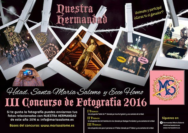-Los trabajos deberán ajustarse al tema propuesto “Nuestra hermandad”. Todas las fotos deben estar relacionadas con nuestra hermandad Santa María Salome y Ecce Homo de la Semana Santa 2016.