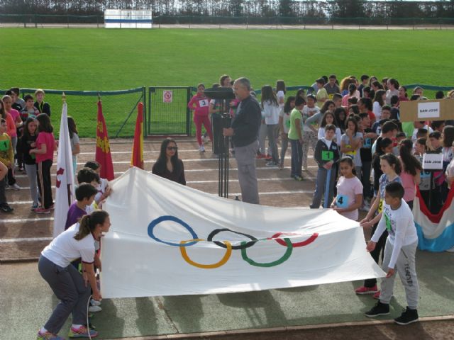 Unos 360 alumnos de 6° de Educación Primaria de los ocho colegios de Totana participaron hoy en la Olimpiada Escolar, una actividad que está organizada por la Concejalía de Deportes y cuenta con la colaboración del profesorado de Educación Física de los centros de enseñanza.