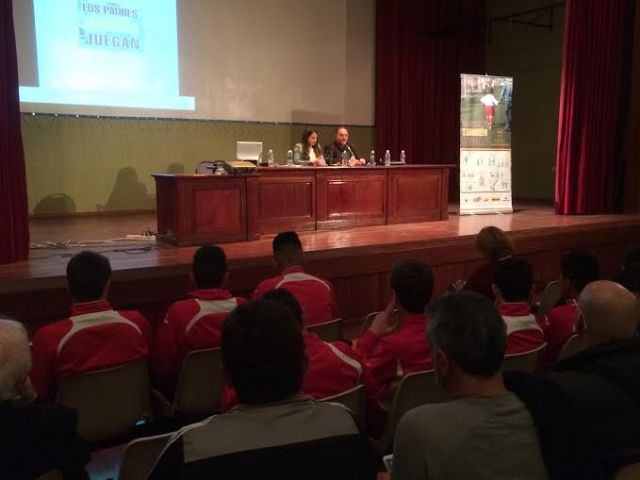 El Comité Antiviolencia de la Federación de Fútbol de la Región de Murcia y la Concejalía de Deportes de Totana celebraron ayer, en el teatro de "La Cárcel" la conferencia bajo el lema "Los padres también juegan", que tuvo aceptación básicamente entre directivos, monitores y jugadores de clubes del municipio de Totana.