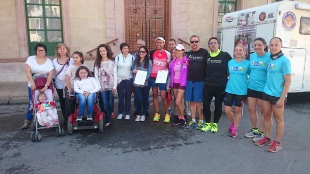De hecho, el presidente de FEDER y D´Genes, Juan Carrión, junto a miembros del Club de Atletismo de Totana, han aguardado a los dos deportistas a la entrada del casco urbano totanero y les han acompañado corriendo en el último tramo de la etapa, hasta su finalización en la plaza de la Constitución, para mostrarles simbólicamente su apoyo.