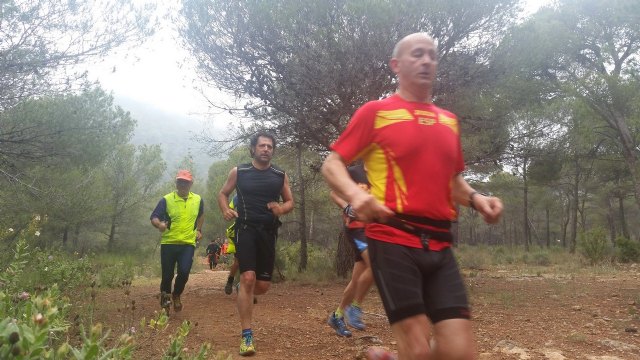 Sobre las 8:30h comenzaron la ruta contando con la presencia de amigos venidos de poblaciones como Lorca, La Hoya o Alhama, con una mañana perfecta para correr por la sierra, con fina lluvia en algún tramo y niebla, ideal para disfrutar de la ruta.