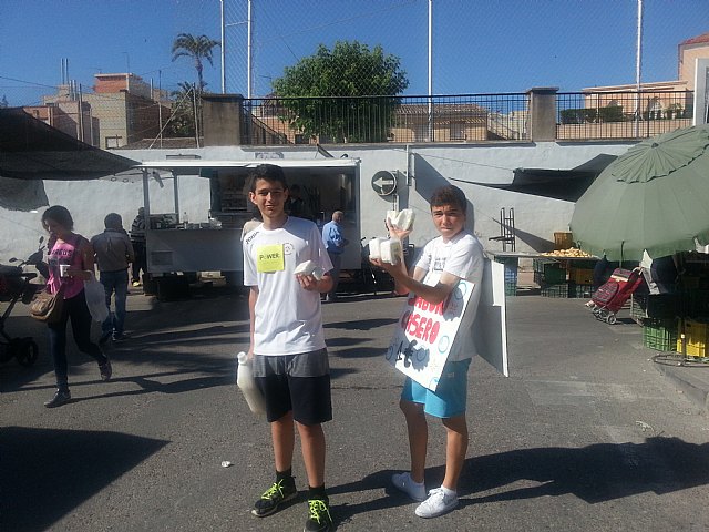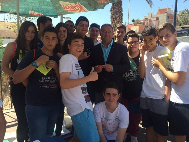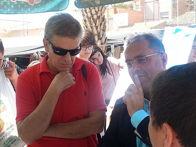 El alcalde de Totana, Juan José Cánovas, ha conocido el proyecto de primera mano visitando a los alumnos en sus puestos en el mercadillo.