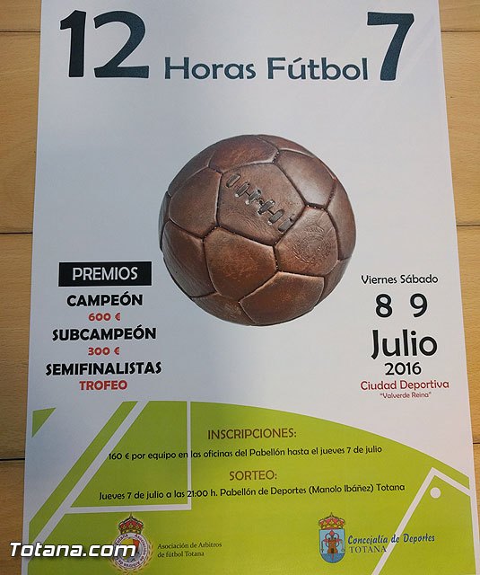 Las 12 horas de Fútbol-7, organizadas por la Asociación de Árbitros de esta localidad y con la colaboración de la Concejalía de Deportes, tendrán lugar los próximos días 8 y 9 de julio en los campos de la Ciudad Deportiva "Valverde Reina".