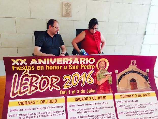 Las fiestas de la pedanía de Lébor en honor a San Pedro, de las que este año se conmemora su vigésimo aniversario, se celebrarán este próximo fin de semana del 1 al 13 de julio con un amplio y variado programa de actividades para todos los gustos y edades.