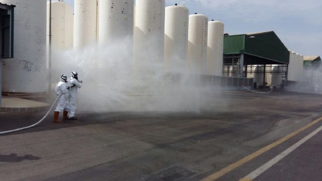 La Consejería de Presidencia, a través de la Dirección General de Seguridad Ciudadana y Emergencias, comprobó hoy la eficacia del Plan de Emergencia Exterior del Sector Químico en Totana, donde se simuló un accidente en la empresa "Fuentes Fertilizantes", junto al parque industrial.