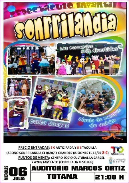 La Concejalía de Festejos recuerda que hoy se celebra el espectáculo infantil "Sonrilandia", ofrecido dentro del programa de las fiestas patronales de Santiago´2016.