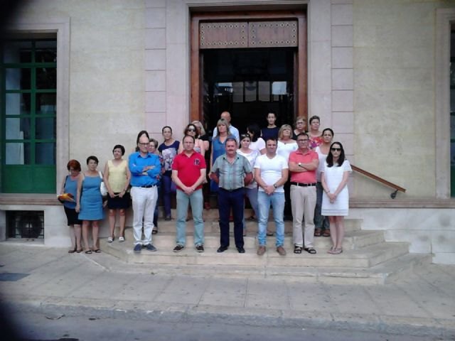 Se guarda un minuto de silencio a las puertas del Ayuntamiento por las víctimas del atentado terrorista de NizaAutoridades locales, con su primer teniente de alcalde a la cabeza, Andrés García, empleados públicos y vecinos en general guardaron hoy al mediodía un minuto de silencio a las puertas del Ayuntamiento de Totana en solidaridad por las víctimas del atentado terrorista registrado anoche en Niza (Francia).