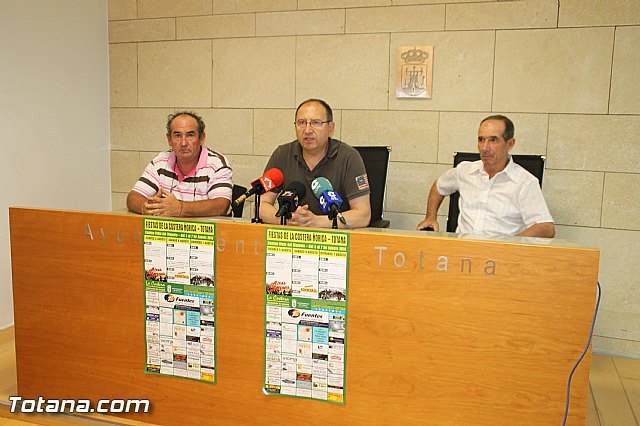 El concejal de Festejos, Agustín Gonzalo Martínez, y el presidente y vicepresidente de la Asociación de Vecinos, Bautista López y Juan José Riquelme, presentaron el programa de fiestas que se inaugura el viernes, 5 de agosto, con el lanzamiento del tradicional chupinazo y los fuegos artificiales y la apertura del chiringuito que gestiona la Hermandad del Beso de Judas. A partir de las 22:30 horas, será la actuación musical del grupo "Aires Latinos".