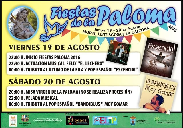 Totana Noticias Las Fiestas de La Paloma tendrán lugar el 19 y 20 de agosto 29/07/2016 Las Fiestas de La Paloma tendrán lugar el 19 y 20 de agosto Fuente: -