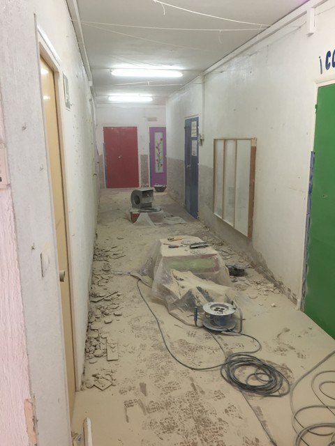 Los trabajos que se están realizando por parte de la empresa Hermanos Palomares, consisten en levantado de rodapiés, saneamientos de las humedades existentes en este edificio y colocación de zócalo una vez realizado el saneamiento. Así mismo,  desde la Concejalía de Servicios informan que es necesario cuando las condiciones económicas lo permitan o bien por medio de una subvención la construcción de una nueva guardería municipal, en la actual ubicación de la escuela infantil “Clara campoamor”.