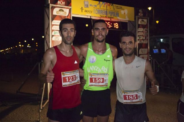 El Sábado 13 de Agosto tuvo lugar la primera edición de la carrera “Corre con nosotros” en Mazarrón y que fue a beneficio de la asociación española contra el cáncer. Tres miembros del Club estuvieron presentes, siendo Bartolomé Sánchez tercero en la general y primero en su categoría sénior, con un tiempo de 34:00, seguido de este entro José Manuel “Mona” con un tiempo de 35:56 y quedando cuarto en sénior, Juan Mario entro con un buen tiempo de 38:32.