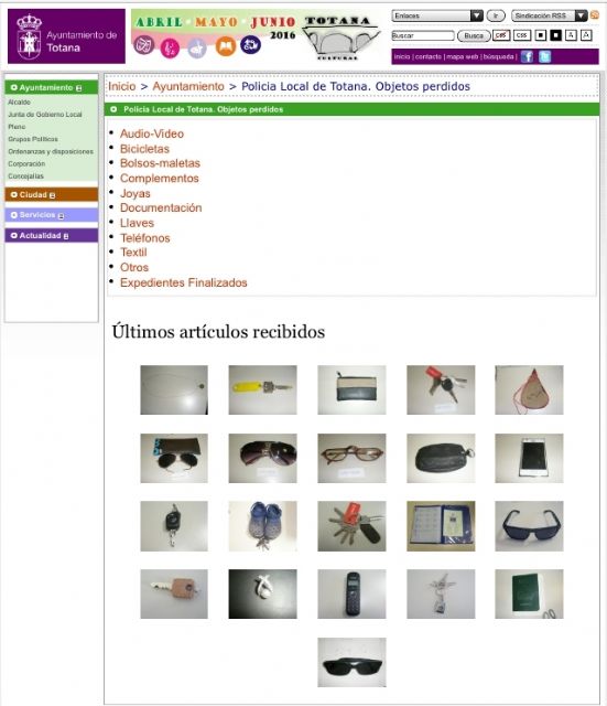 También pueden consultar el enlace de objetos perdidos en la página web corporativa municipal www.totana.es, donde existe una sección en las que se ilustran fotografías para identificar éstos.