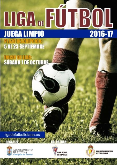 La Concejalía de Deportes abre hoy el plazo de inscripción para la Liga de Fútbol "Juega Limpio" 2016/2017 con la intención de comenzar la competición el próximo día 1 de octubre.