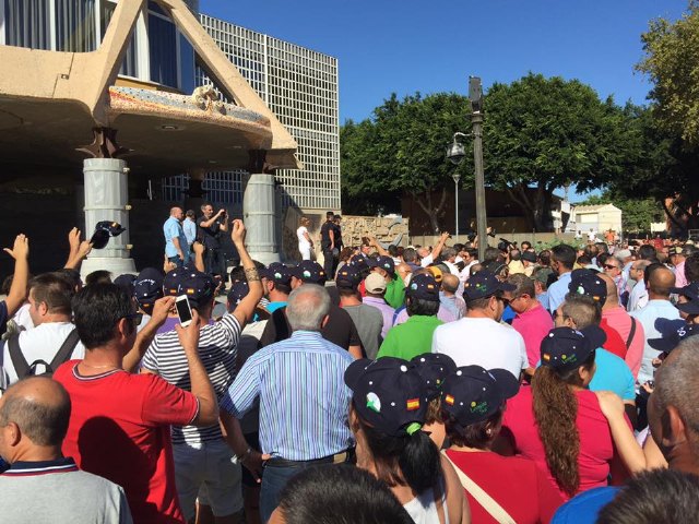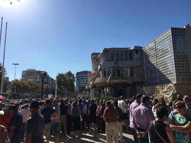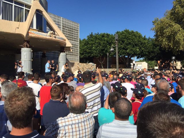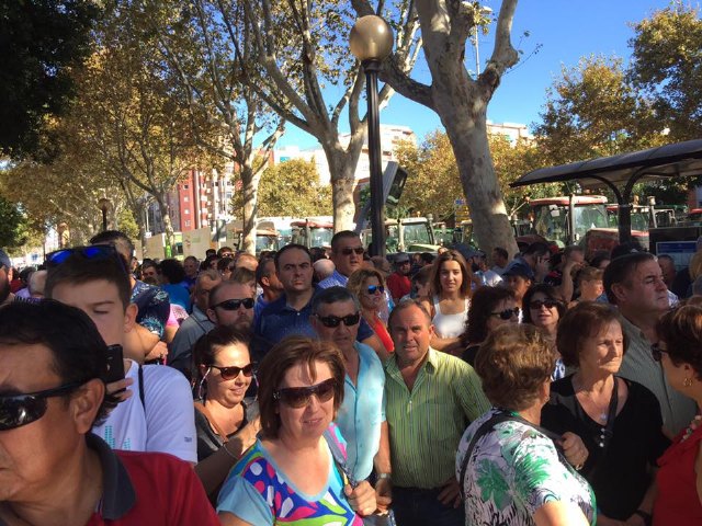 El alcalde de Totana con los agricultores murcianos ante la Asamblea Regional en Cartagena