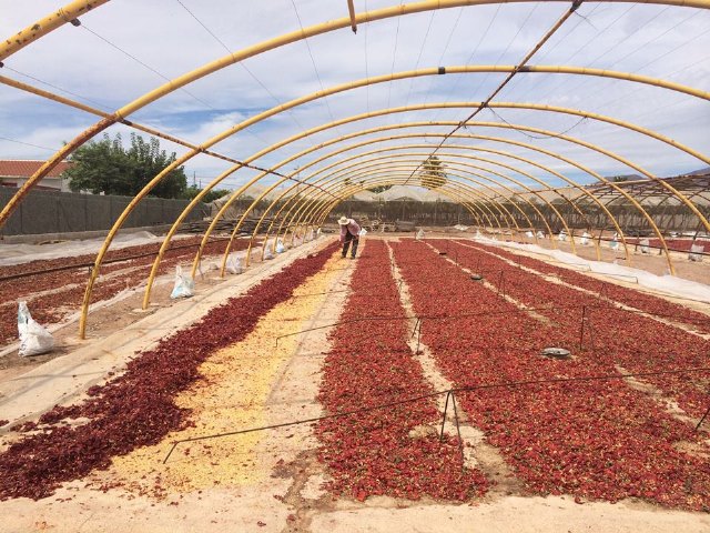 Me gustaría, a través de estas fotos, poder transmitir el inconfundible y singular aroma de los pimientos recién partidos y en proceso de secado con el sol y labrisa del Poniente. Un producto agrícola que forma parte de nuestra historia reciente, que se resiste a la extinción como ha sucedido con otros por la escasez de agua o los nuevos "vientos comerciales".