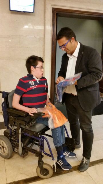 Francisco recibió con gran emoción los regalos que le entregó el presidente de la PB Totana, y que consistieron en varios objetos relacionados con el FC Barcelona y una camiseta del 1er equipo, donada por la peña totanera, y firmada por su gran ídolo blaugrana, que no es otro que Andrés Iniesta.