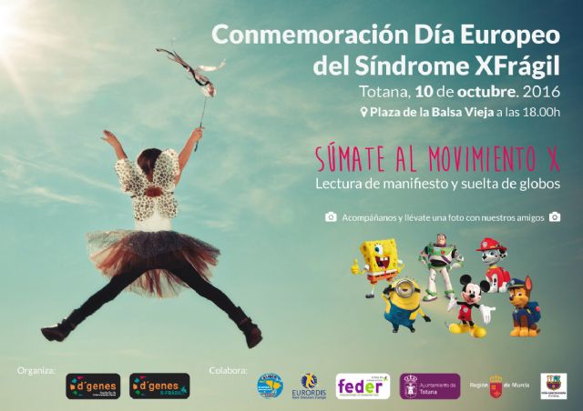 Esta acción conmemorativa está organizada por la Asociación de Enfermedades Raras D´Genes y el grupo de trabajo D´Genes X Frágil, y cuenta con la colaboración de la Federación Española de Enfermedades Raras (FEDER), la Alianza Iberoamericana de Enfermedades Raras (ALIBER), EURORDIS, el Ayuntamiento de Totana, la Comunidad Autónoma y la Peña Barcelonista de Totana.