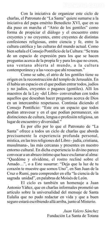 El patronato de La Santa organiza el ciclo de charlas "En el corazón del Amado: la experiencia mística en las religiones del Libro"