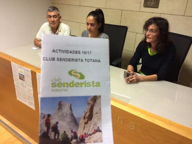 La concejal del ramo, Isabel María Molino, y la presidenta del Club Senderista de Totana, Patricia Romero, acompañadas del miembro de este club, Eugenio Pérez, han presentado la oferta de actividades de esta asociación para la nueva temporada, en la que para ser socio hay que abonar una cuota anual de 25 euros, que otorga numerosas ventajas y beneficios.