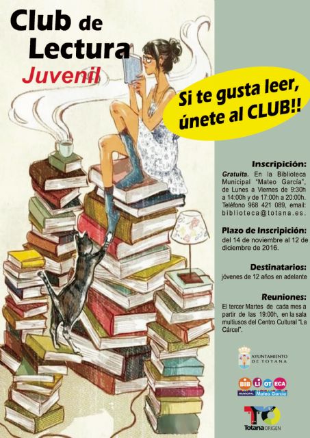 Los interesados que quieran formar parte de esta dinámica de grupo, deberán formalizar la inscripción en la Biblioteca Municipal "Mateo García", de lunes a viernes de 9:30 a 14:00 horas, y de 17:00 a 20:00 horas. Más información en el teléfono 968 42 10 89 o en el correo electrónico bilioteca@totana.es.