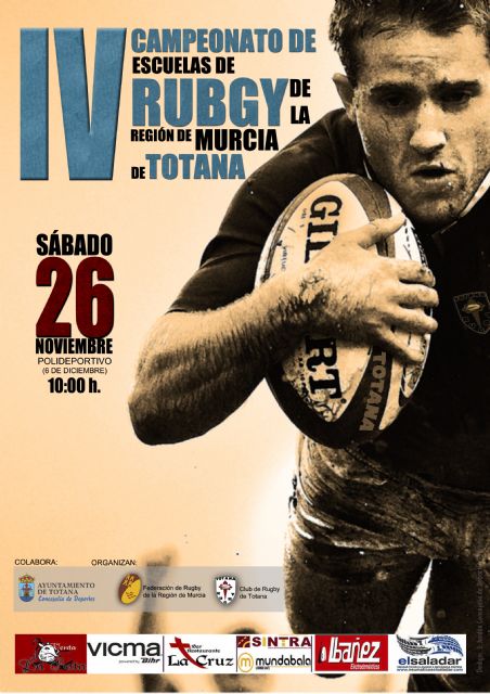 Totana acogerá el próximo sábado, 26 de noviembre, el IV Campeonato de Escuelas de Rugby de la Región de Murcia, en el polideportivo municipal "6 de diciembre", con la presencia de representantes de los ocho clubes murcianos en esta disciplina deportiva.