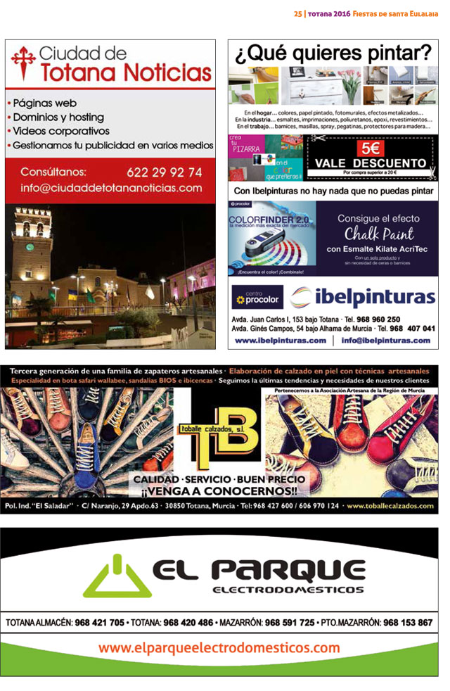 La revista incluye artículos sobre aspectos culturales y costumbristas de Totana, así como el elenco de actividades programadas para estos festejos patronales.