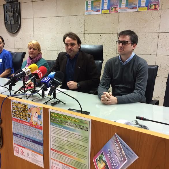 El concejal del ramo, Javier Baños, acompañado por el edil de Servicios a la Ciudad e Infraestructuras, Víctor Balsas, -cuyo departamento colabora en las actividades formativas de los usuarios-, presentaron las actividades que van a organizar el Centro de Día para la Discapacidad Intelectual "José Moyá" y el Centro de Día para Personas con Enfermedad Mental con motivo de esta efeméride.