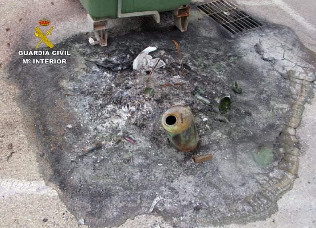 La Guardia Civil de la Región de Murcia ha desarrollado durante los últimos meses la operación 'FLAMAS', una investigación dirigida a esclarecer la autoría de numerosos incendios intencionados cometidos en el municipio de Totana, que se ha saldado con la detención de una persona a la que se le atribuye la presunta autoría de 50 delitos de daños por incendio en contenedores de residuos urbanos (30), vehículos (5), así como mobiliario y vegetación de parcelas de propiedad pública y privada del municipio. El valor de los bienes dañados asciende a 50.000 euros.