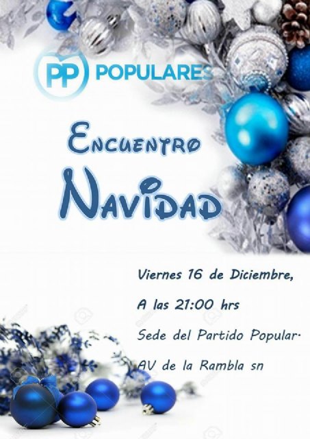 El Partido Popular de Totana quiere invitar a los militantes y simpatizantes, y vecinos en general, al tradicional “Encuentro de Navidad” que organizaremos este viernes 16 de Diciembre por la noche a partir de las 21:00h, en la sede de nuestro partido en la Avenida Rambla de la Santa.