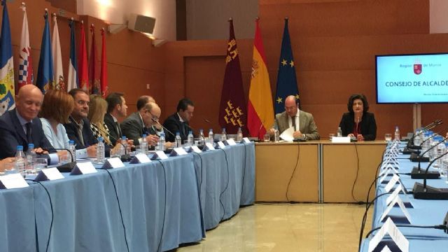 En la cuarta reunión del Consejo de Alcaldes de la Región de Murcia se trasladó a los responsables municipales las novedades que presentan los presupuestos elaborados por el Gobierno regional en relación con los ayuntamientos, en los que crece un 20 por ciento la inversión destinada a las obras y servicios municipales.