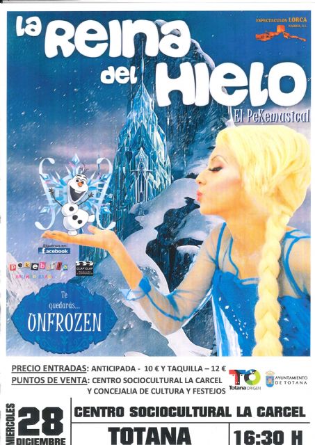 Los espectáculos infantiles "La reina del hielo" y "Los cuentos de la abuela mágica", organizados por las concejalías de Festejos y Cultura del Ayuntamiento de Totana, tendrán lugar en el Centro Sociocultural "La Cárcel" los días 28 de diciembre y 2 de enero, respectivamente.