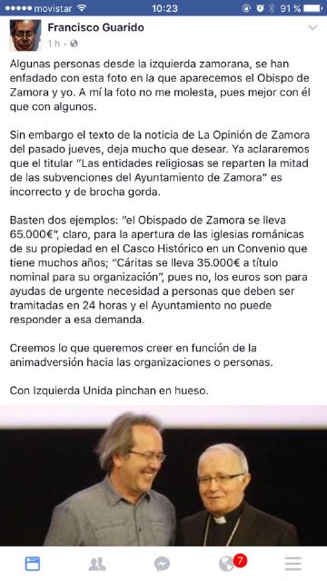 Sale al paso de las críticas, mi compañero y alcalde de Zamora, paco Guarido, porque los "Izquierdistas de Brocha Gorda" les reprochan una foto con el Obispo y que el Ayuntamiento que preside conceda una cantidad de dinero para mantener impresionantes Iglesias Románicas que son visitadas por los zamoranos o quien visita sa bella ciudad bañada por le Duero.