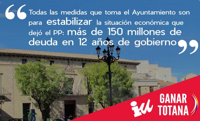 "Desde Ganar Totana hacemos una vez más una llamada a la cordura al Partido Popular, les invitamos a que den las explicaciones respecto al gasto y derroche que llevaron a cabo en este consistorio y asuman sus responsabilidades como causantes de la ruina en la que nos encontramos. También les invitamos a abandonar esa oposición destructiva que están llevando a cabo y acepten de una vez la propuesta de un debate público para trabajar todos juntos en la creación de un Frente Común orientado a elaborar un plan de futuro donde las fuerzas políticas se comprometan a establecer una ruta que oriente la estabilización económica. Aunque si bien es cierto, que de quien no supo gobernar, no se puede esperar que sepa hacer oposición."