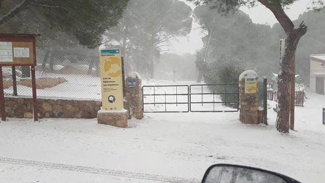 En estos momentos sigue nevando en Sierra Espuña de forma copiosa. Desde la Balsa Chica es imposible subir más arriba y a la altura del Llano de las Cabras, tampoco es transitable. Incluso el acceso a la Base del EVA 13 es imposible. Los quitanieves han tenido que retroceder.