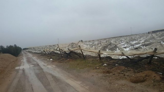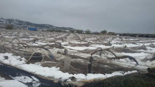La consejera de Agua, Agricultura y Medio Ambiente, Adela Martínez Cachá, y el alcalde de Totana, Juan José Cánovas, han visitado hoy los parrales de uva de mesa damnificados en diferentes zonas de la diputación totanera de El Raiguero, a consecuencia del temporal de nieve y que ha provocado numerosos daños materiales en estas infraestructuras en una superficie que está todavía por precisar.