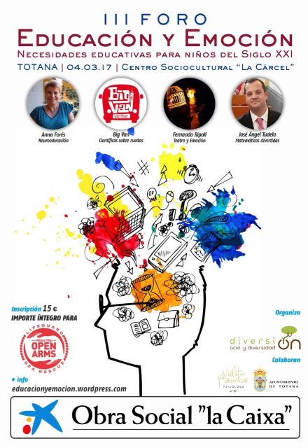 La Asociación "Diversi-on Ocio y diversidad" organiza, por tercer año consecutivo, el "III Foro Educación y Emoción", evento que tendrá lugar el próximo sábado 4 de Marzo en el Centro sociocultural "La Cárcel" del municipio durante toda la jornada. Evento solidario en el que se abordarán temáticas referentes sobre un tema tan de actualidad como es la educación emocional.