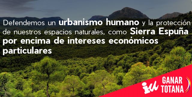 "Como siempre hemos hecho, no podemos sino seguir defendiendo a capa y espada la Protección de nuestros valiosos espacios naturales, siendo la mejor muestra de ello Sierra Espuña. El declarado Parque Regional de Sierra Espuña, es nuestro Patrimonio Natural más preciado, y es nuestra obligación, la de los grupos políticos y la de cada totanero y totanera, velar por su Conservación a toda costa..." Afirman desde la formación de izquierdas.