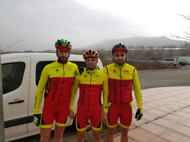 En cuanto a los resultados de los tres ciclistas del club totanero, tras estar condicionados por salir en el último cajón y los tapones que se produjeron en los km iniciales, podrían hacer remontada hasta terminar Francisco Cánovas el 6° M-45, Juan Francisco 12 elite y Raúl 41 elite.