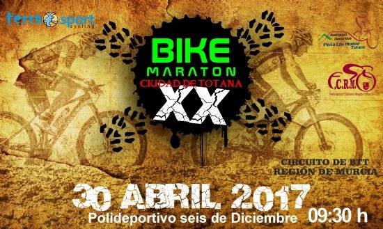 La Asociación Deportiva Peña Las Nueve, os invita a una nueva edición del XX Bike Maratón de BTT Ciudad de Totana, prueba puntuable para el nuevo Circuito de BTT de la Región de Murcia.