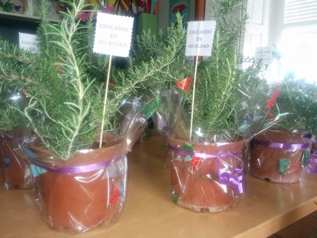 La Concejalía de Igualdad del Ayuntamiento de Totana ha obsequiado a los diferentes centros educativos de esta localidad con una maceta de romero (planta autóctona) como símbolo de sensibilización en la tarea coeducativa en la igualdad a la comunidad escolar, coincidiendo con la celebración hoy del Día Internacional de la Mujer.
