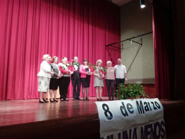Cuatro mujeres de Totana fueron homenajeadas hoy en el transcurso del acto institucional organizado por la Concejalía de Igualdad para conmemorar el Día Internacional de la Mujer que se celebró en el teatro del Centro Sociocultural "La Cárcel", y contó con la asistencia de autoridades municipales y representantes de las diferentes asociaciones de mujeres de este municipio..
