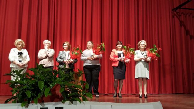 Las homenajeadas han sido María Martínez Galindo (a propuesta de la Asociación Salus Infirmorum), Ángeles Hernández Martínez (Asociación Amas de Casa de las Tres Avemarías), Mercedes Sánchez Tudela (Asociación Sociocultural de la Mujer Trabajadora) y Concepción Cánovas García "Morerica Galán" (a iniciativa de las concejalías de Igualdad y Cultura, avalando la propuesta del Pleno del Ayuntamiento).