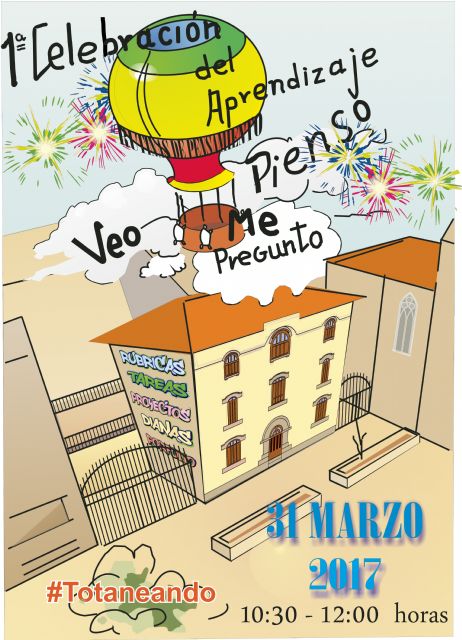 El colegio invita a todas las familias de Totana a esta "1ª Celebración del Aprendizaje" que tendrá lugar el día 31 de marzo de 10:30 a 12:00. Para los alumnos será un día muy especial porque ellos son los protagonistas y los profesores estarán encantados de acompañar a los asistentes en todo momento.