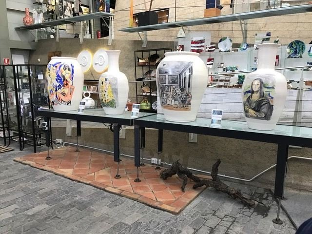 La obra en exposición consiste en varias tinajas de gran tamaño en las que se ha plasmado la reproducción de conocidas pinturas de diversos estilos y autores.