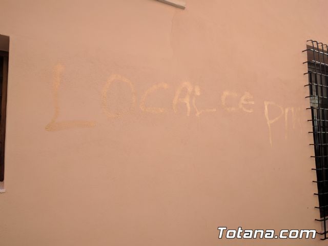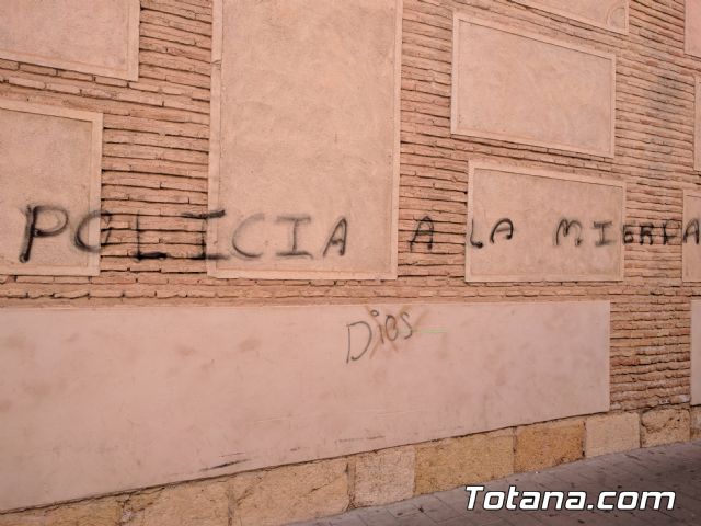 El primer edil ha realizado estas manifestaciones después de que hayan aparecido pintadas anónimas en la fachada principal del Ayuntamiento de Totana, en la plaza de la Constitución, y en los muros de la parroquia de Santiago, en la calle Santiago de esta localidad, que han sido denunciadas y objeto de una investigación por parte de la Guardia Civil.