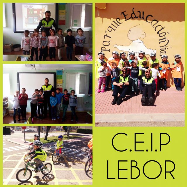 Una quincena de alumnos de Educación Infantil y Primaria del Colegio de Lébor ha recibido recientemente la visita de los agentes de la Policía Local integrantes en la Escuela de Educación Vial.