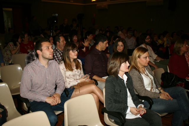 Posteriormente, se desplazó al teatro de "La Cárcel" para ofrecer una conferencia reivindicativa sobre la poesía como mecanismo de influencia en la realidad y herramienta en el compromiso social, que contó con la interacción de algunos de los asistentes. Ésta fue presentada por la periodista totanera, Laura Salmerón, y el propio alcalde de Totana.