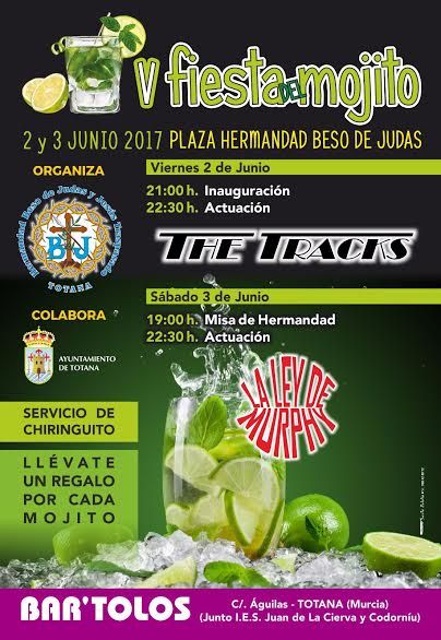 La Hermandad Beso de Judas y Jesús Traspasado de Totana organizará los días 2 y 3 de junio la IV Fiesta del Mojito con un animado programa, que cuenta con la colaboración de la Concejalía de Festejos del Ayuntamiento de Totana.