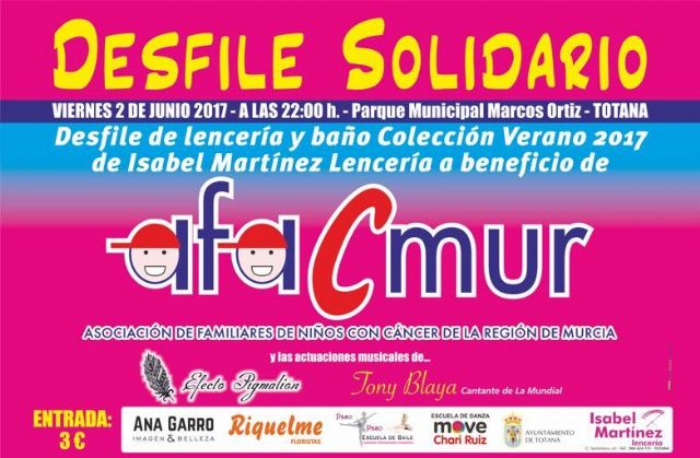 La Asociación de Familiares de Niños con Cáncer de la Región de Murcia (AFACMUR) va a organizar el próximo día 2 de junio, a las 22:00 horas, un nuevo desfile solidario de lencería y baño a beneficio de esta organización, el cuarto de los últimos años, en el que se presentará la colección de Verano´2017 del establecimiento "Isabel Martínez Lencería".