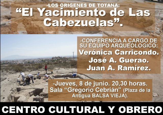 La charla-coloquio "Los orígenes de Totana: El yacimiento de las Cabezuelas" tendrá lugar el próximo jueves 8 de junio